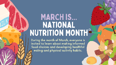 February 23, 2023National Nutrition Month® is an annual nutrition education and information campaign created 50 years ago in 1973 by the Academy of Nutrition and Dietetics. The campaign, celebrated each year during the month of March, focuses attention on the importance of making informed food choices and developing healthful eating and physical activity habits. This awareness campaign was initiated in March 1973 as a week-long event titled "National Nutrition Week," to deliver nutrition education messages to the public while promoting the profession of dietetics. In 1980, in response to growing public interest in nutrition, the week-long celebration expanded to become a month-long observance.