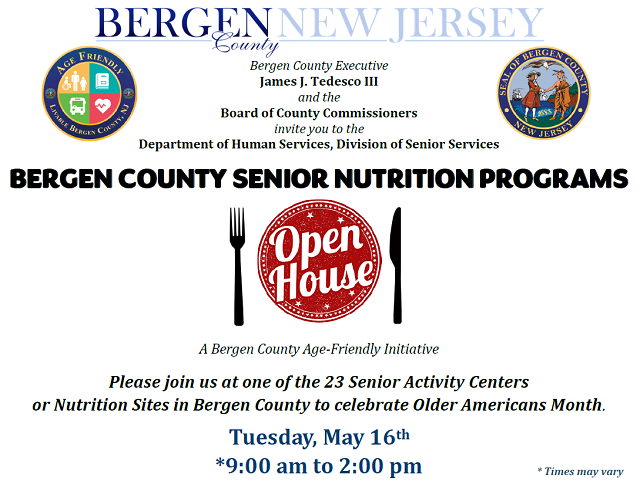 May 02, 2023Please join us at one of the 23 Senior Activity Centers or Nutrition Sites in Bergen County to celebrate Older Americans Month.